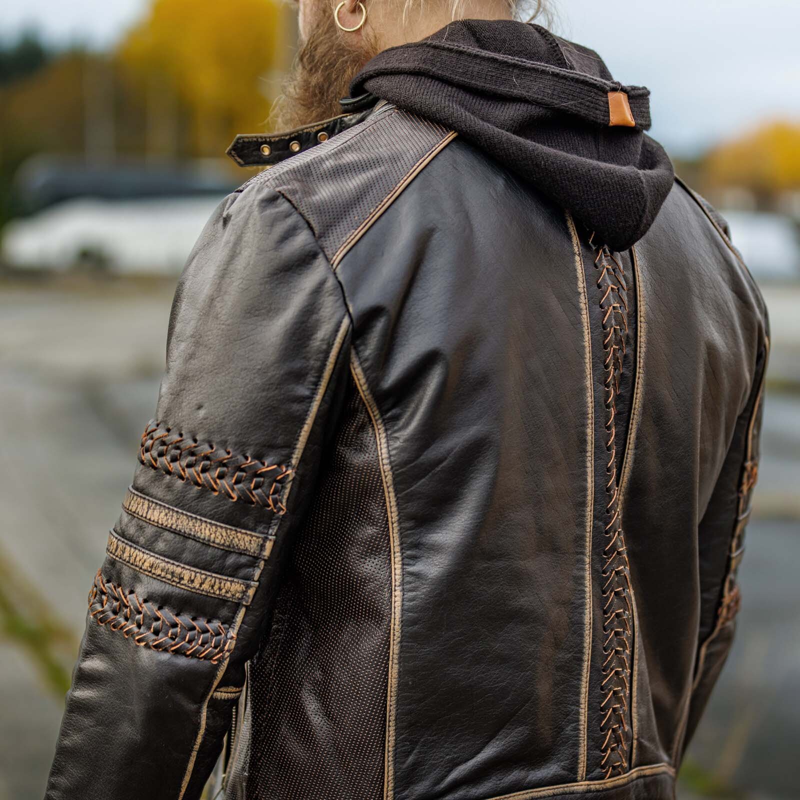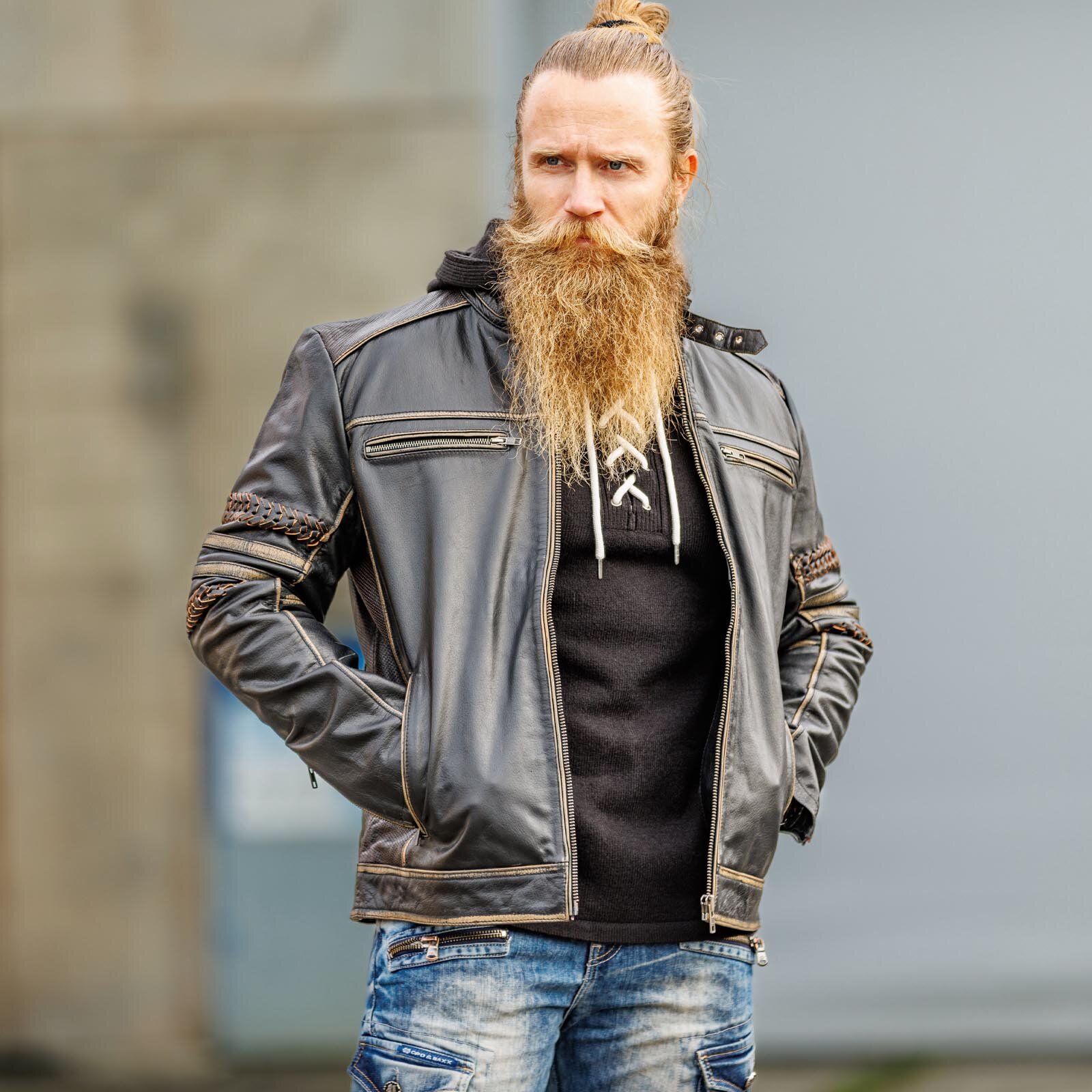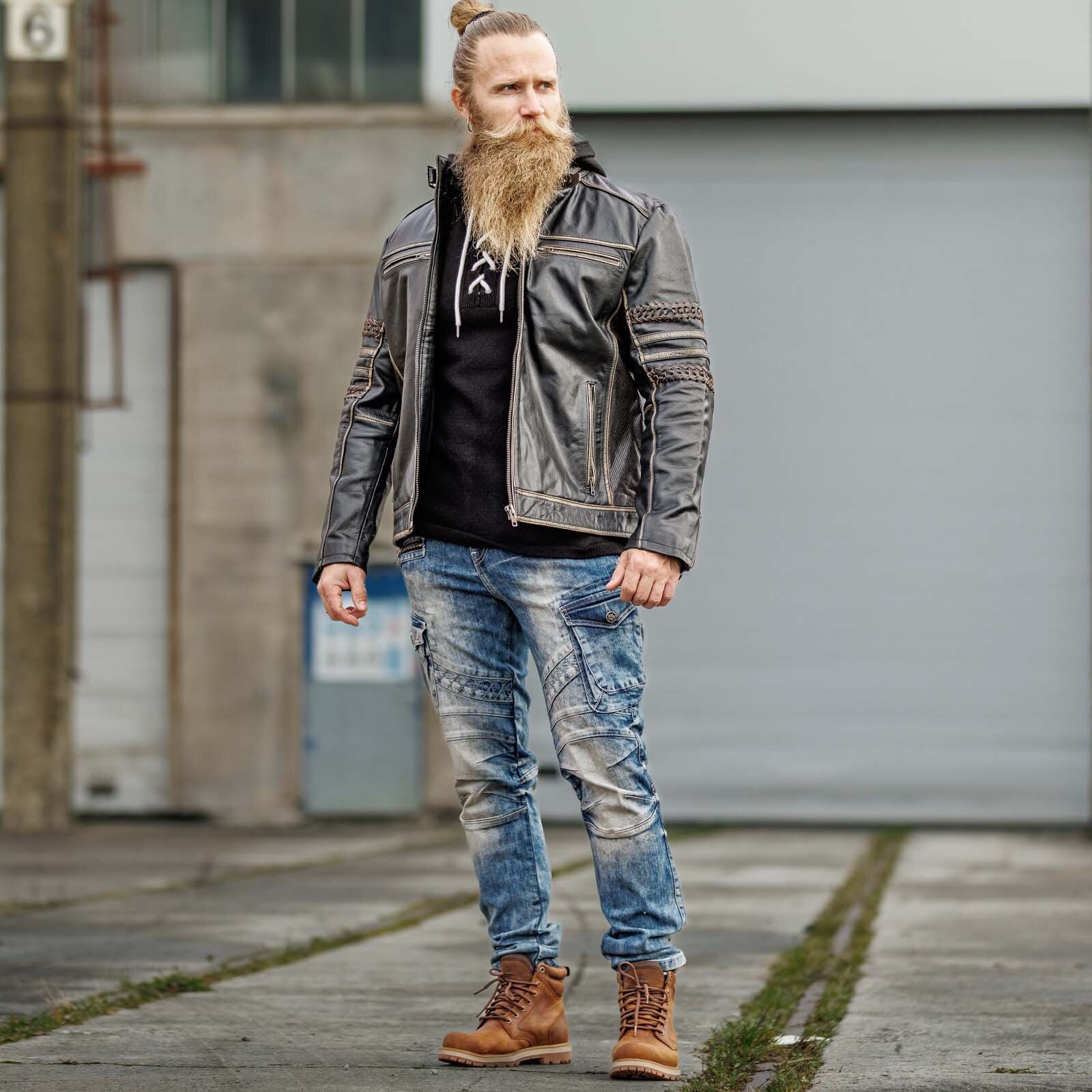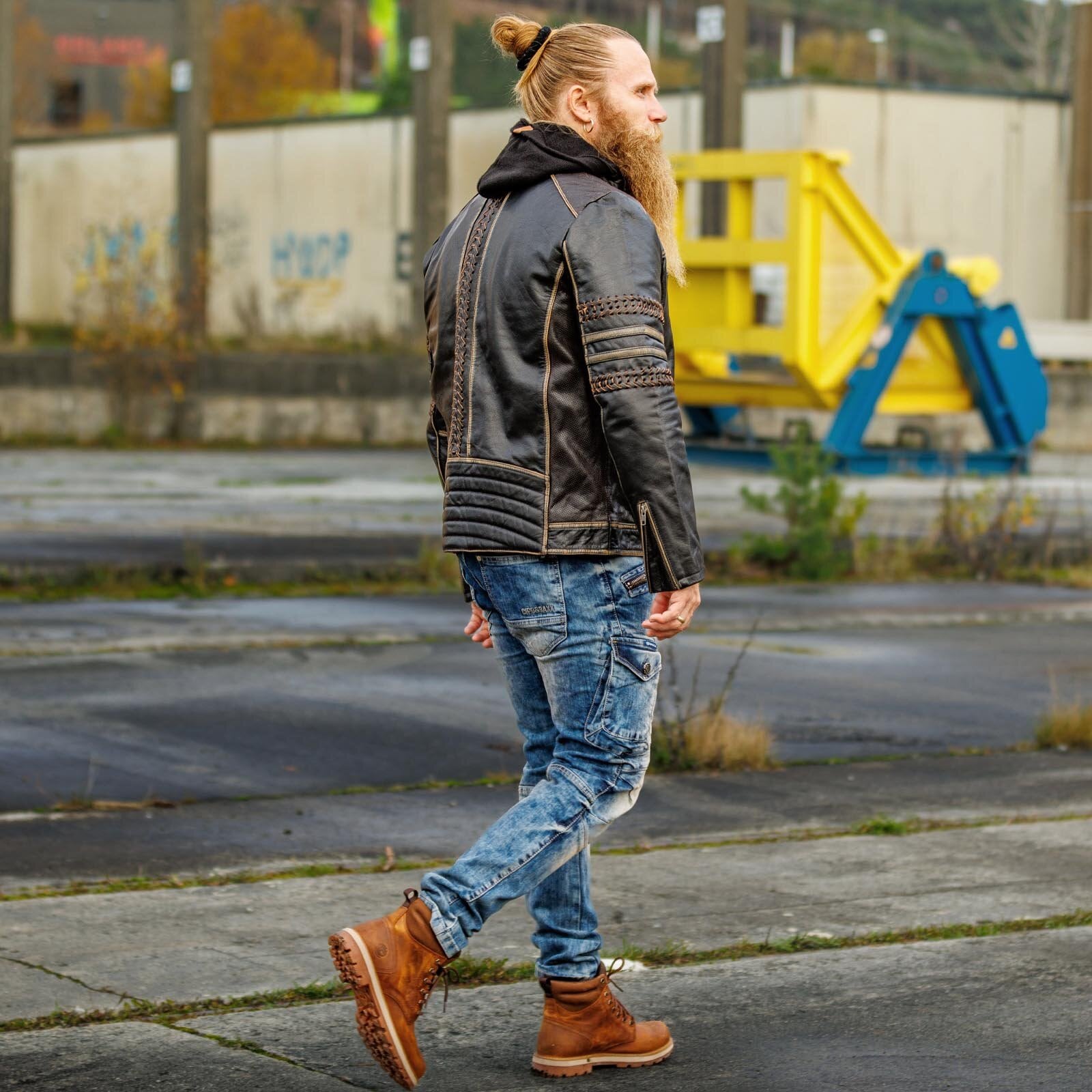 Vill du ha en stil som utstrålar både rå styrka och medveten design? Denna outfit matchar tufft läder med världens kanske mest kända kängor.